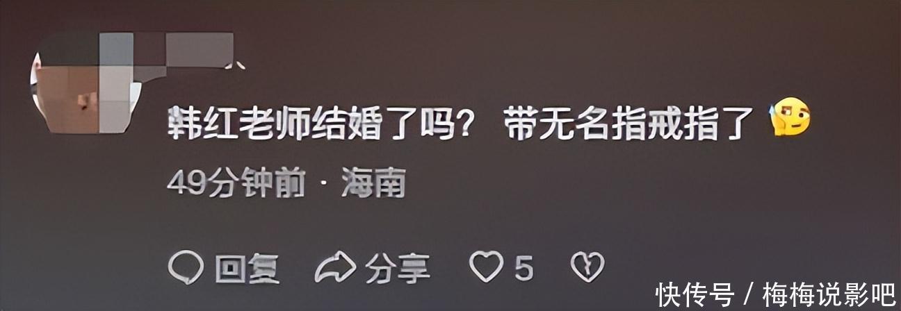 不外除了吃生肉的问题,还有一个方位也引起了部分网友的关注,那即是韩红的无名指上,果然出现了一颗法例!于是有网友提问:韩红憨厚这是成婚了吗?
