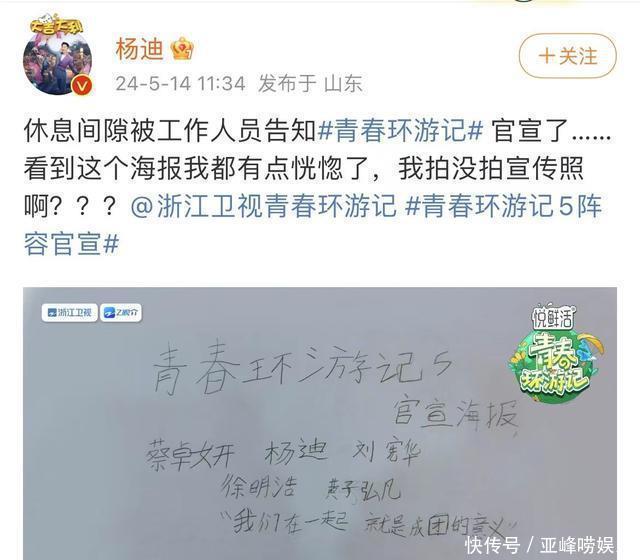 这一季的嘉宾全体看上去还可以,然则没思到官方的宣传那么不得力,海报径直丑出圈了。率先,《芳华环纪行》宣发的海报是少量齐不经心,确实好出丑。再来就是官宣定档的图片,就手写的像片,何况这手写的字超等丑的。