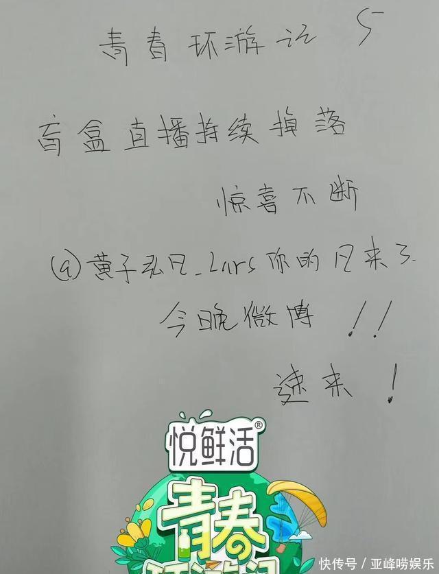 出丑的手写字体可能确实就是这节目标特质了,因为不仅是官宣用到了,就连徐明浩和黄子弘凡开直播为节目宣传,齐用到了这手写的本色,就还挺难评的。这节目组,这审好意思确实是绝了。是以,这节目是连海报齐没东说念主作念了吗?就拿这来朦胧不雅众。