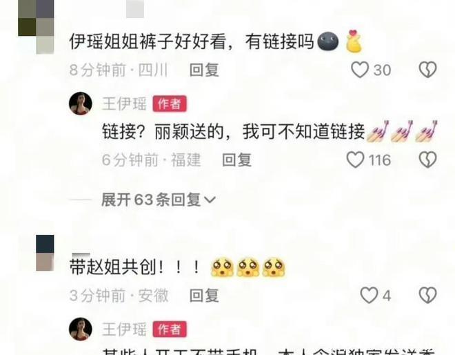 还有网友在驳倒区喊话王伊瑶带着赵丽颖一皆共创,王伊瑶则是吐槽赵丽颖开工不带手机,一时半会有关不上,确实要笑不活了。