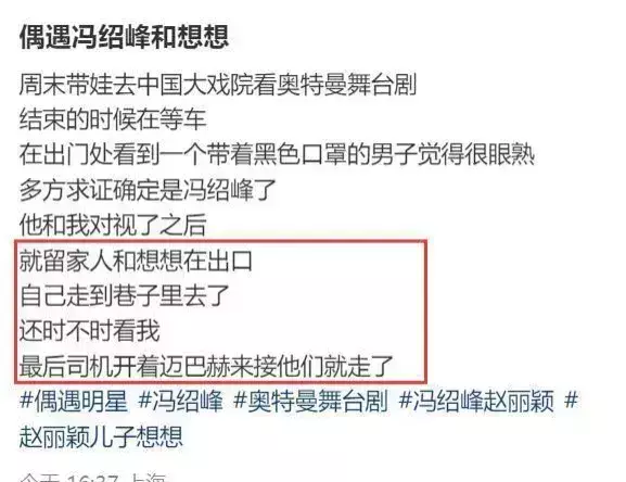 近日美高梅酒店小梅沙,有网友在上海中国大剧院偶遇冯绍峰带着女儿思思看奥特曼的舞台剧。